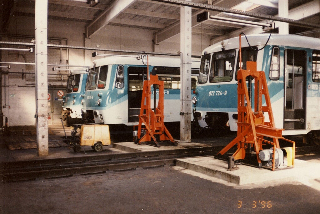 Blick in die Triebwagenhalle der Werkstatt Neuruppin mit LVT.