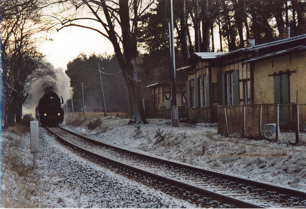 Neuglobsow), hier am ehem. Bahnhof Menz.