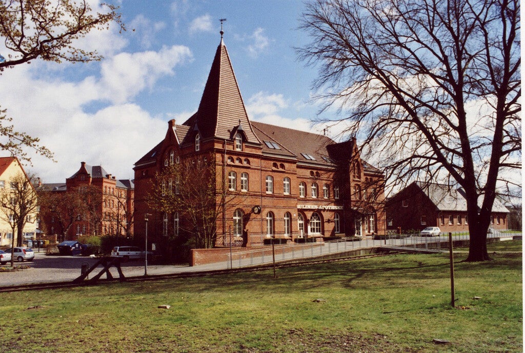 Denkmalgerecht saniertes neues Empfangsgebäude des ehem. Paulinenauer Bahnhofs Neuruppin (erbaut 1900). Hier befinden sich jetzt medizinische Praxen und eine Apotheke.