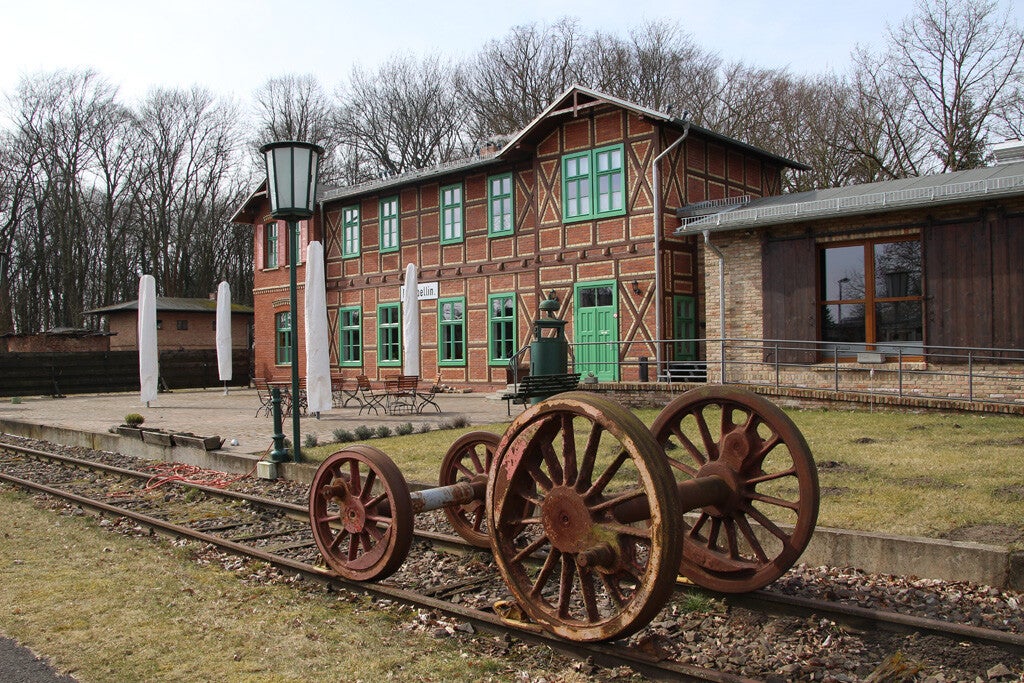 Das denkmalgerecht sanierte Empfangsgebäude des ehem. Bahnhofs Fehrbellin, heute die Gaststätte: